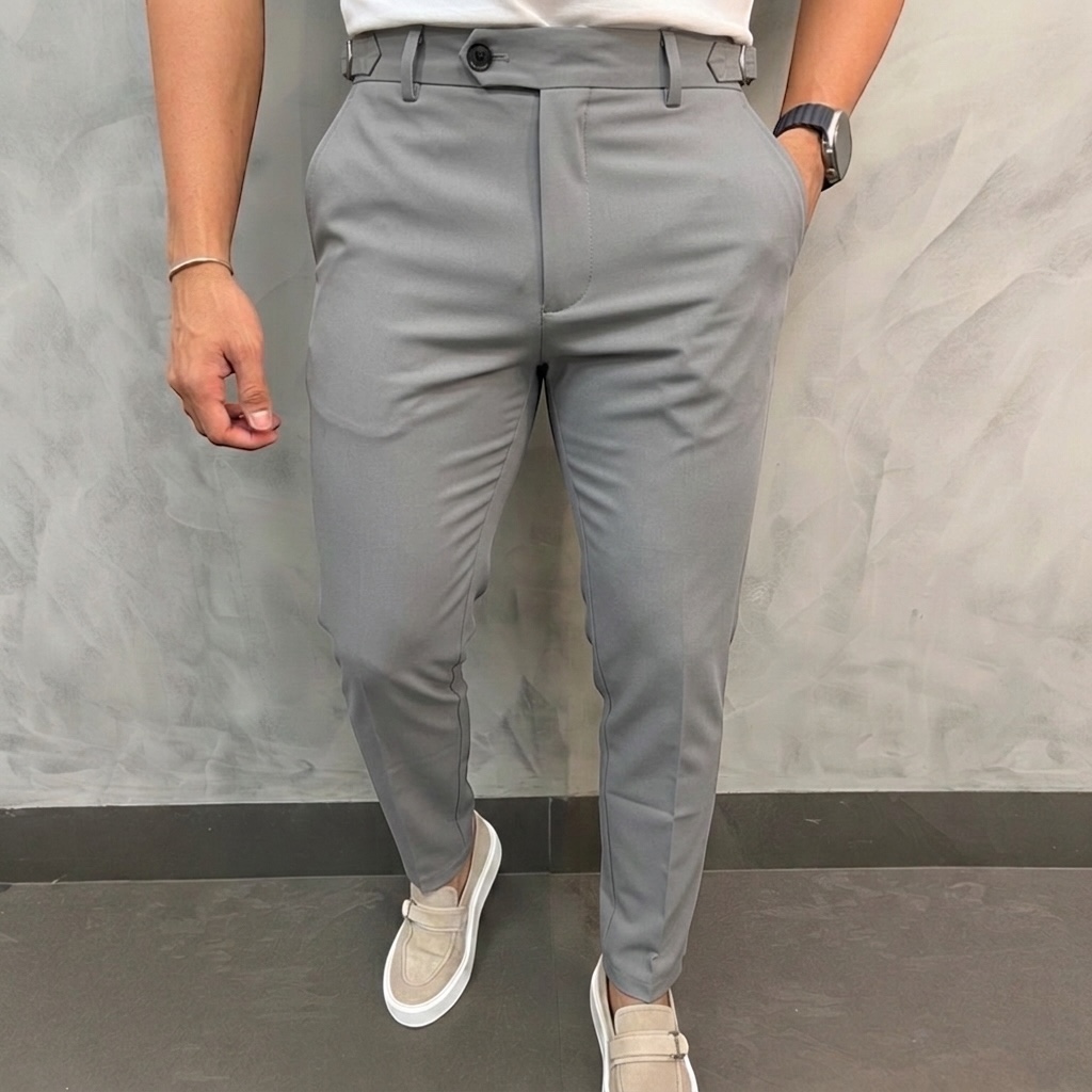 A Calça Alfaiataria Slim Cinza combina elegância e conforto, sendo a escolha ideal para quem busca um visual sofisticado e versátil. Seu design moderno conta com ajuste lateral discreto, permitindo o aperto da peça, garantindo um caimento perfeito para diferentes tipos de corpo.